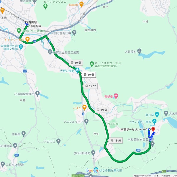 土日祝日のみ、『JR有田駅』から『有田コミュニティバス 南北線 有田ポーセリンパーク行き』